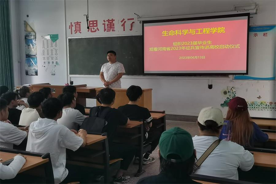 (通讯员龚乐乐)为深入贯彻习近平强军思想,进一步做好老员工征兵工作。6月13日上午,k1体育组织2023届毕业生、全体辅导员在6#B207集中观看了“河南省2023年征兵宣传进高校活动启动仪式”。