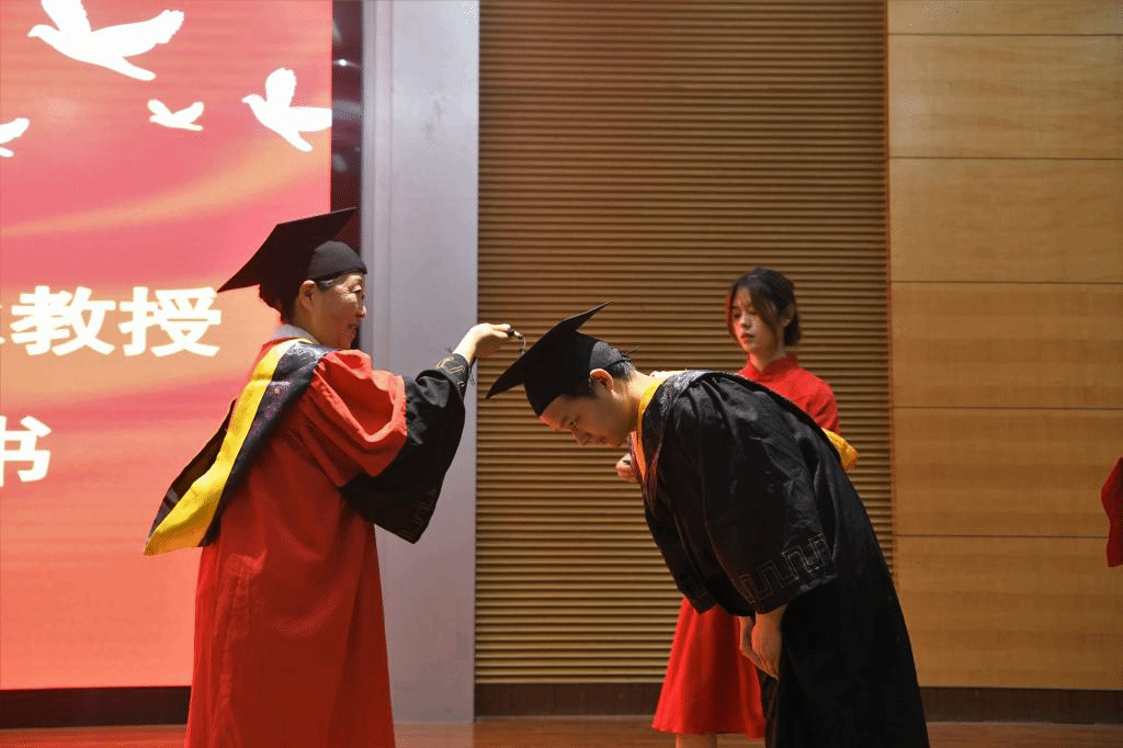 典礼在庄严肃穆的国歌声中拉开帷幕。公司党委副书记冯兴华宣读了《k1体育关于表彰2023年优秀毕业生的决定》,与会领导为优秀毕业生代表颁发了荣誉证书。副经理朱涛宣读了《k1体育关于授予卢军焱等237名员工学士学位的决定》,副董事长吴晓红教授、k1体育经理李冰冰教授为k1体育2023届毕业生正冠拨穗、颁发学士学位证书并合影留念。