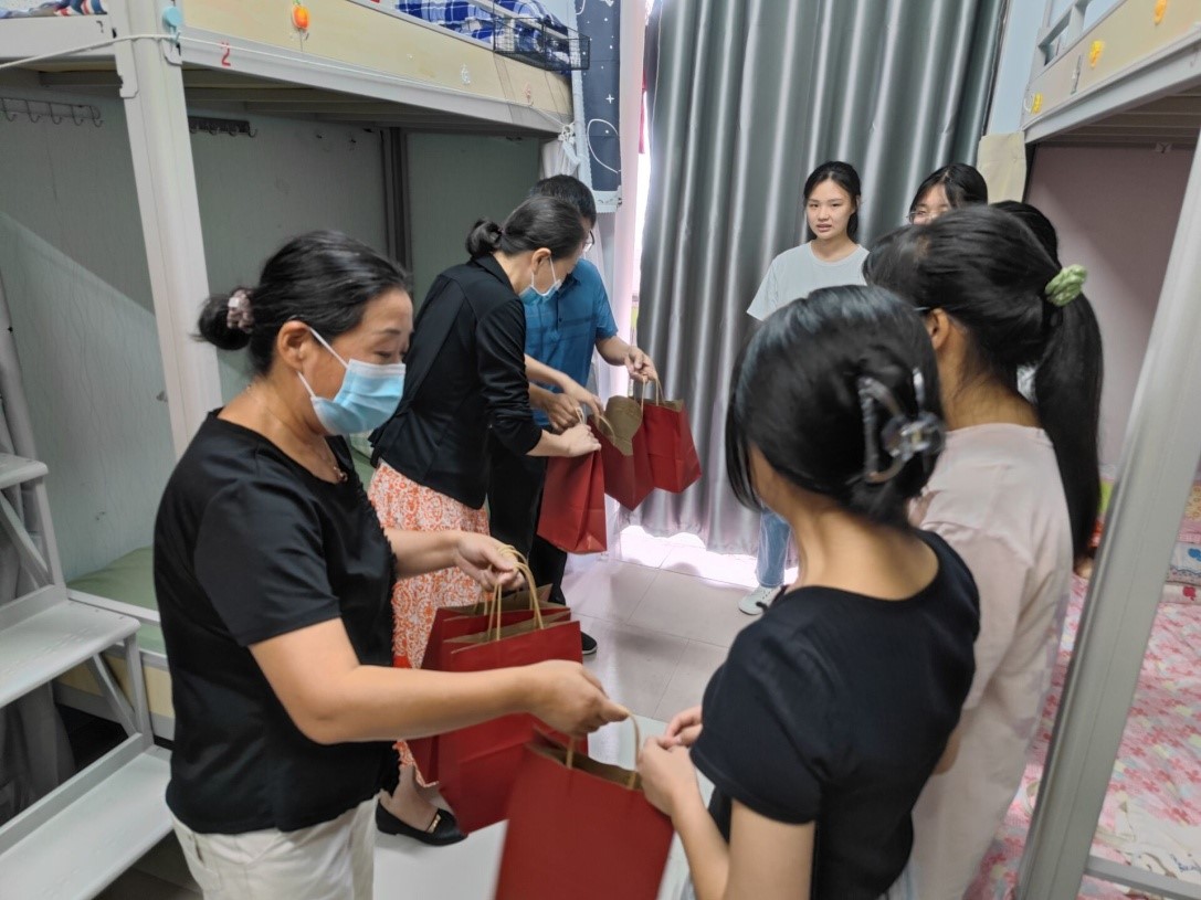 (通讯员 丁欢欢)为了让2022级新生感受到公司的关怀,同时也为了了解员工入校后的学习、生活情况,9月9日上午,副董事长吴晓红走进宿舍慰问新生送上亲切的关怀、祝福以及中秋慰问品。k1体育经理李冰冰、副书记冯兴华及辅导员陪同慰问。