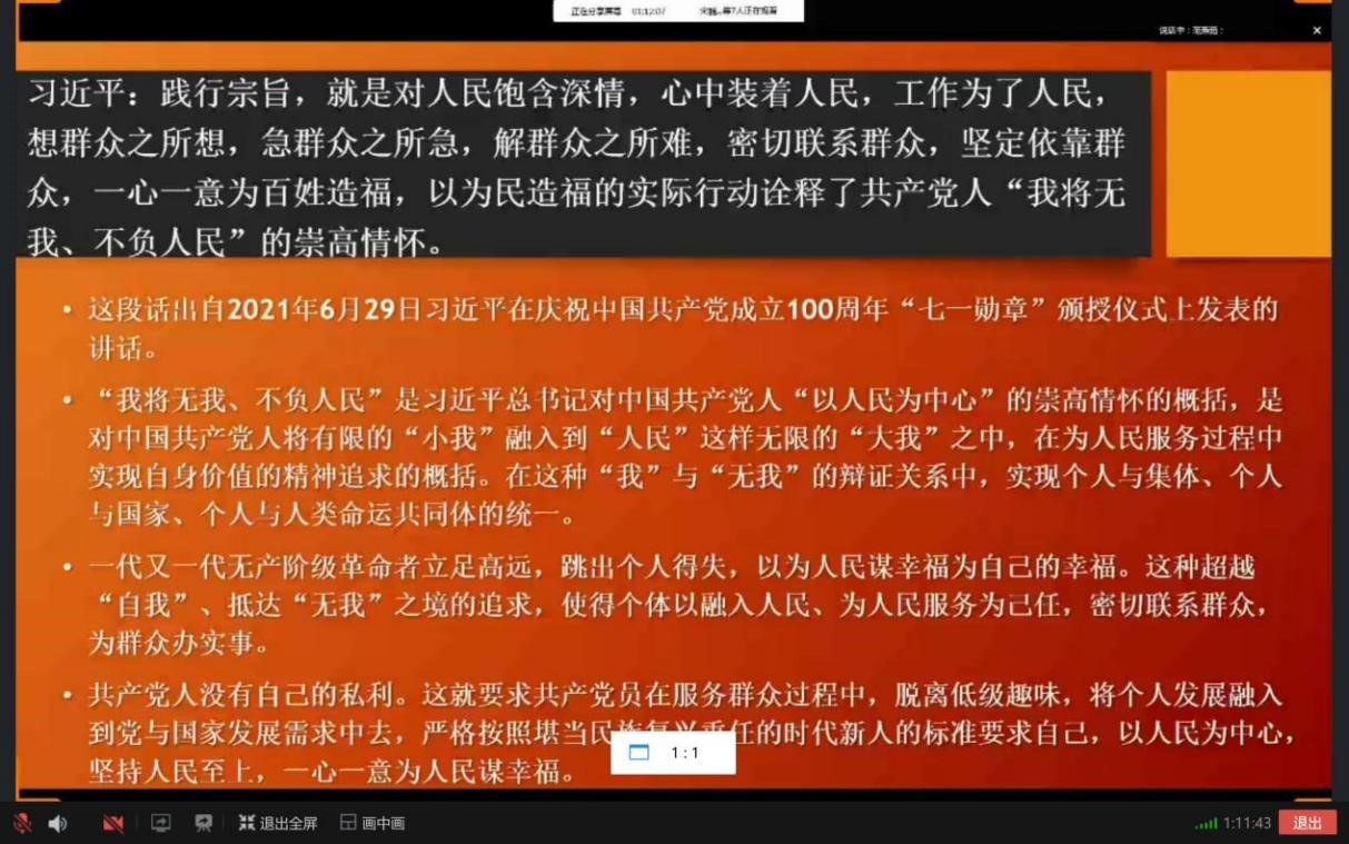 会前,教工党支部成员通过线上会议的形式集中学习与研讨习近平总书记在庆祝中国共产党成立100周年大会和庆祝中国共产党成立100周年系列活动时的重要讲话精神,以及习近平总书记关于学习和总结党的历史重要论述等内容。随后开展谈心谈话和问题查摆等工作,结合“七一”讲话精神的会议主题,制定了专题组织生活会的会议方案和相关安排。