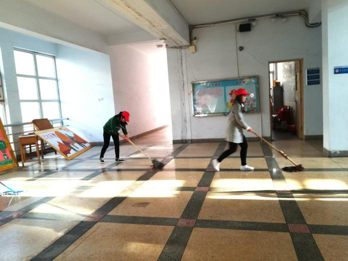 (志愿者打扫大厅)