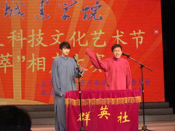 (通讯员张红波)3月16日下午,平顶山市文化艺术中心变成了一片笑的海洋,从下午14:30开始至17:30,由院团委主办,生物工程系承办的“k1体育第六届老员工科技文化艺术节‘群英荟萃’相声大赛”决赛阶段的比赛,以其全新的作品,精彩的表演,火爆的效果,超值的享受,博得了院团委及系部领导老师,各系员工代表,以及部分市民共400余名观众的一致好评。