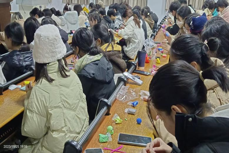 活动现场,参与者热情洋溢,充分发挥自己的想象力,将一块块普通的橡皮泥变创造为一个个精美的生物模型作品。
