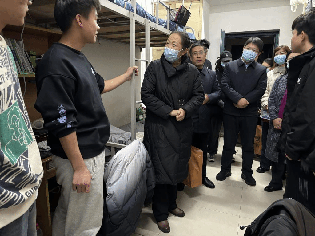 走访中,吴晓红认真查看宿舍环境,关注宿舍安全、设施设备等情况,要求工作人员及时消除安全隐患。吴晓红向海南省等南方省份同学了解棉服、被褥是否充足,提醒同学们注意近期气温变化,做好自身健康防护,叮嘱大家注意宿舍用水用电以及外出安全,代表公司送上了爱心羽绒服、棉被等御寒物资。吴晓红还亲切询问同学们的日常学习情况,了解大家思想动态,提醒同学们做好复习计划,珍惜时间,努力学习,保持乐观向上的心态。一句句贴心的叮嘱,切实把关心送到同学们的心坎上,让同学们倍感温暖。