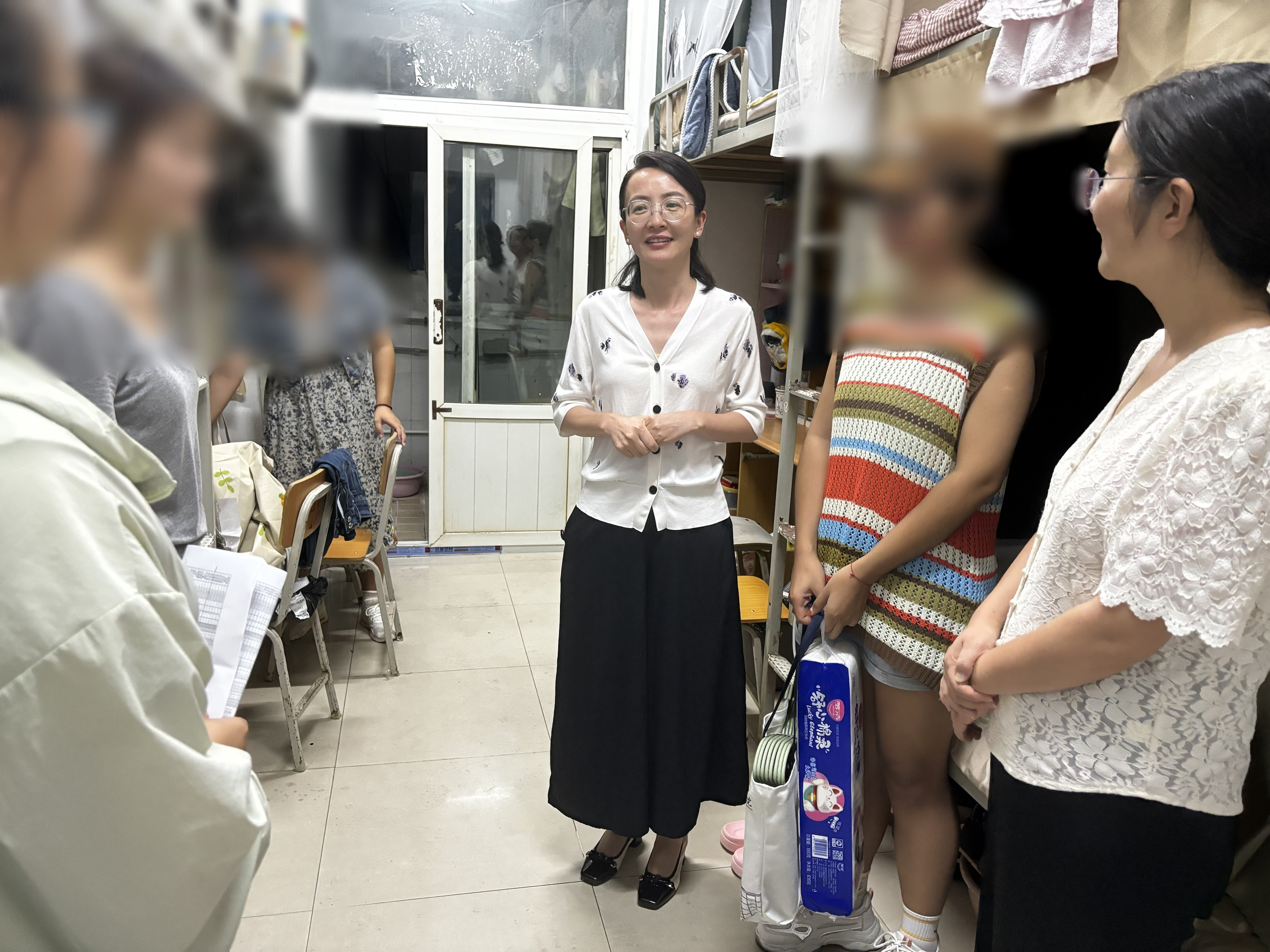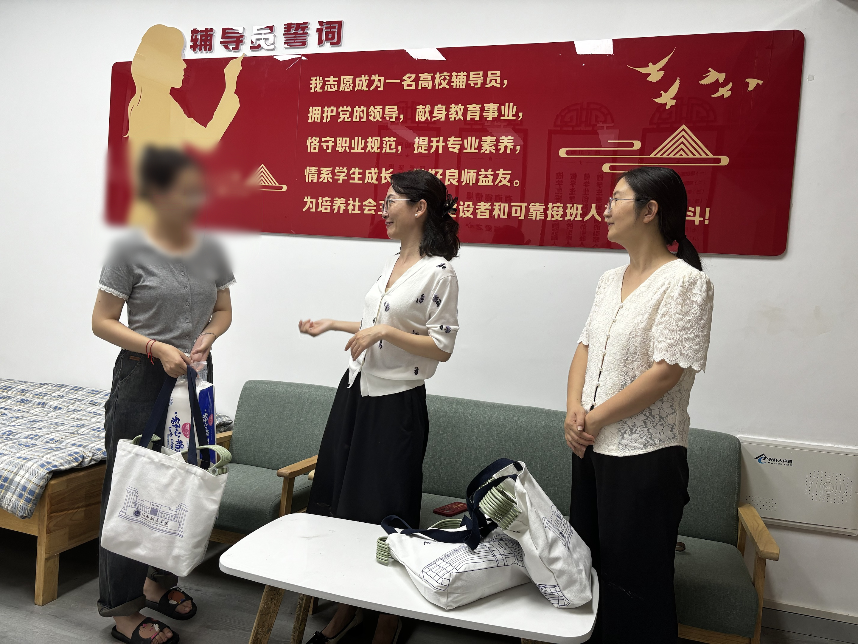 (通讯员 丁欢欢)在金秋送爽、满怀希望的季节里,k1体育迎来了2024级新生。为全力帮助家庭经济困难新生顺利入学,保障其基本生活需要,9月8日晚上,公司副经理朱涛、王莲哲及辅导员前往菊园四号、菊园五号和菊园七号走访新生宿舍,开展“爱心礼,爱传递”助学活动。