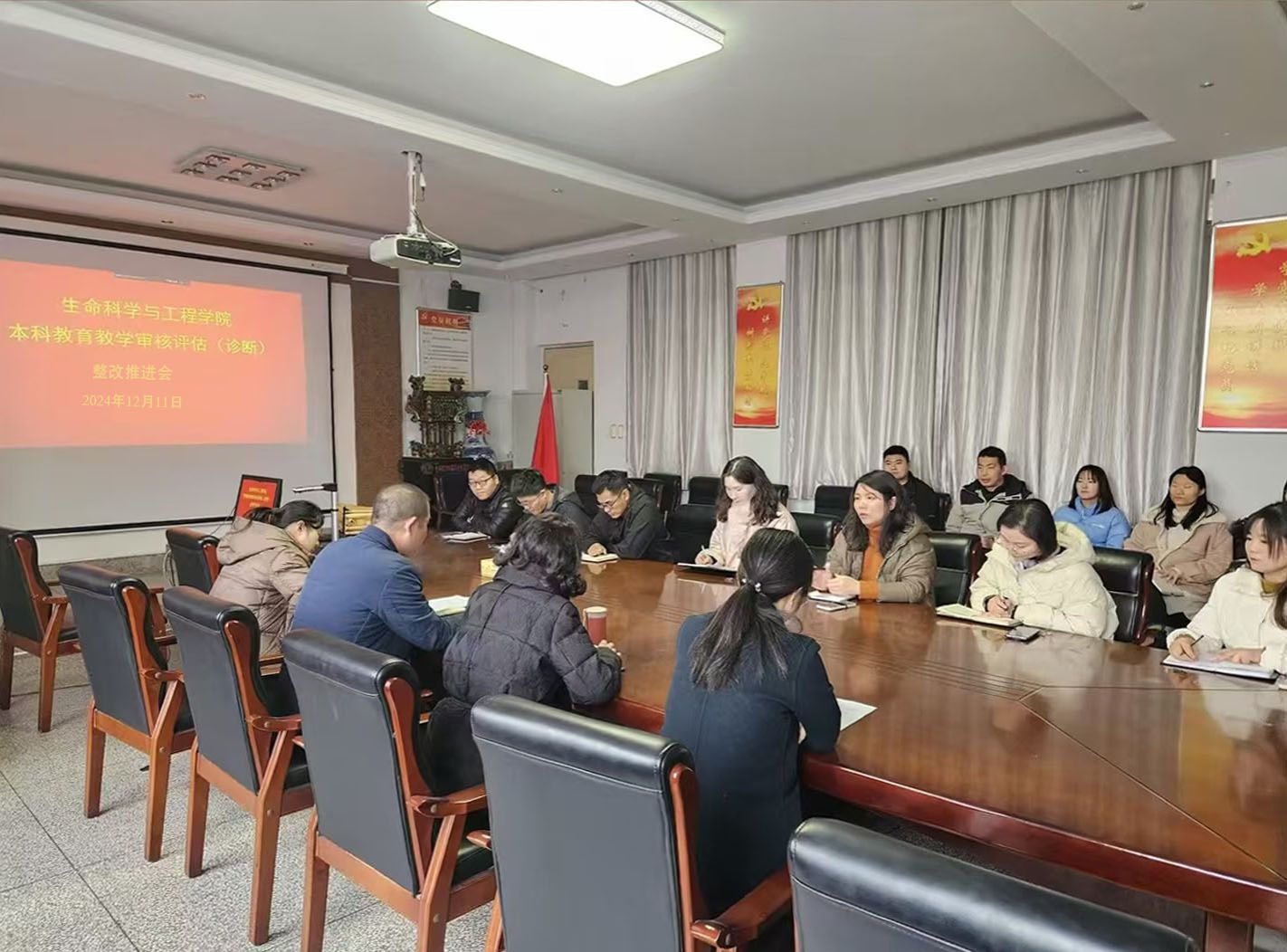(通讯员:郑萌萌)12月11日下午,k1体育在k1体育6号楼会议室召开本科公司产品审核评估(诊断)整改推进会。公司副经理朱涛、王莲哲、副书记张金俊、各教研室主任、副主任及各党支部书记参加会议,k1体育党委书记武二伟主持并讲话。