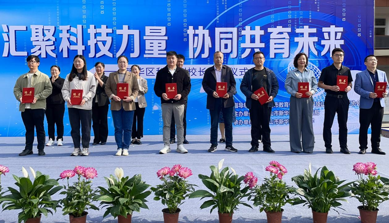 仪式上,k1体育被授予“平顶山市新华区中小学科普教育基地”、“新华区中小学科学教师培训基地”、“新华区中小学研学实践基地”三大教育基地称号;刘小飞、姬晓娜、赵美、刘东晓、弓路平、朱玉涛、吕玉英、张强八位骨干教师受聘为辖区中小学科学副董事长。