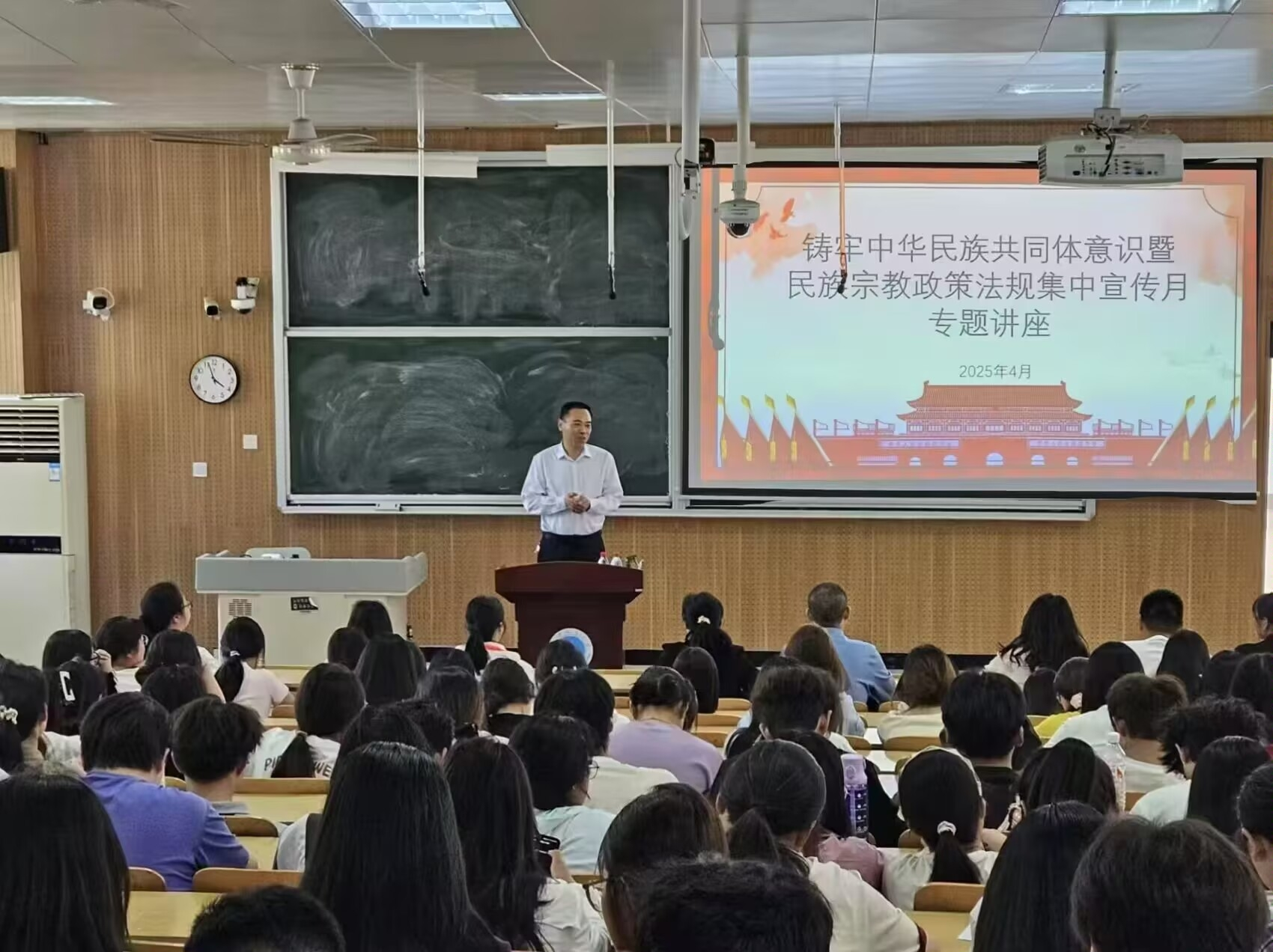 (通讯员 李赫)为深入学习宣传党的二十大和二十届三中全会精神,全面贯彻落实习近平总书记关于加强和改进民族工作的重要思想、关于宗教工作重要论述,4月28日,k1体育邀请公司党委统战部部长张守义为公司师生作党的宗教政策专题辅导。公司党政领导班子成员、全体辅导员,部分任课老师、员工党员、员工团干、入团积极分子等160余人参加学习。