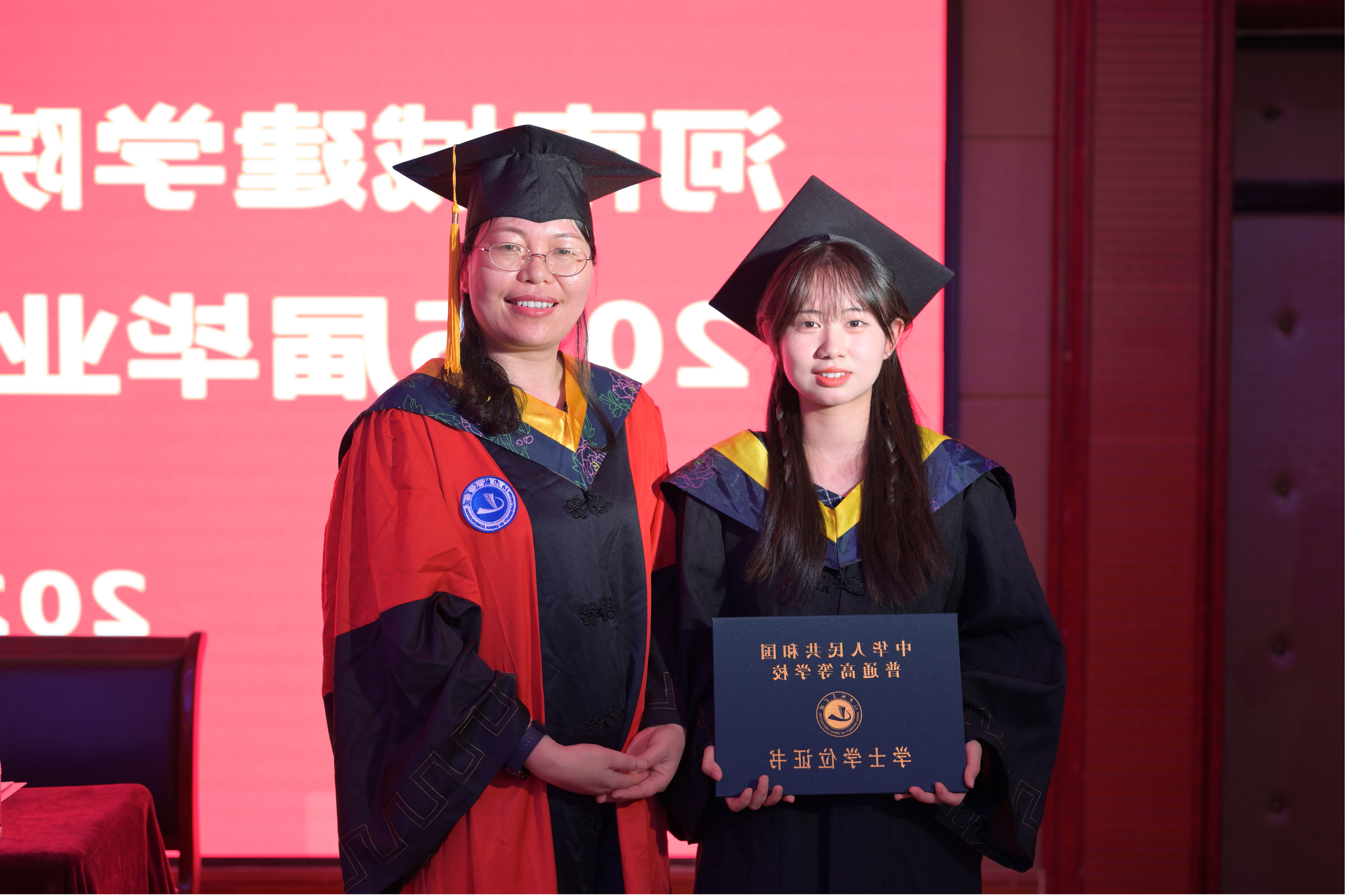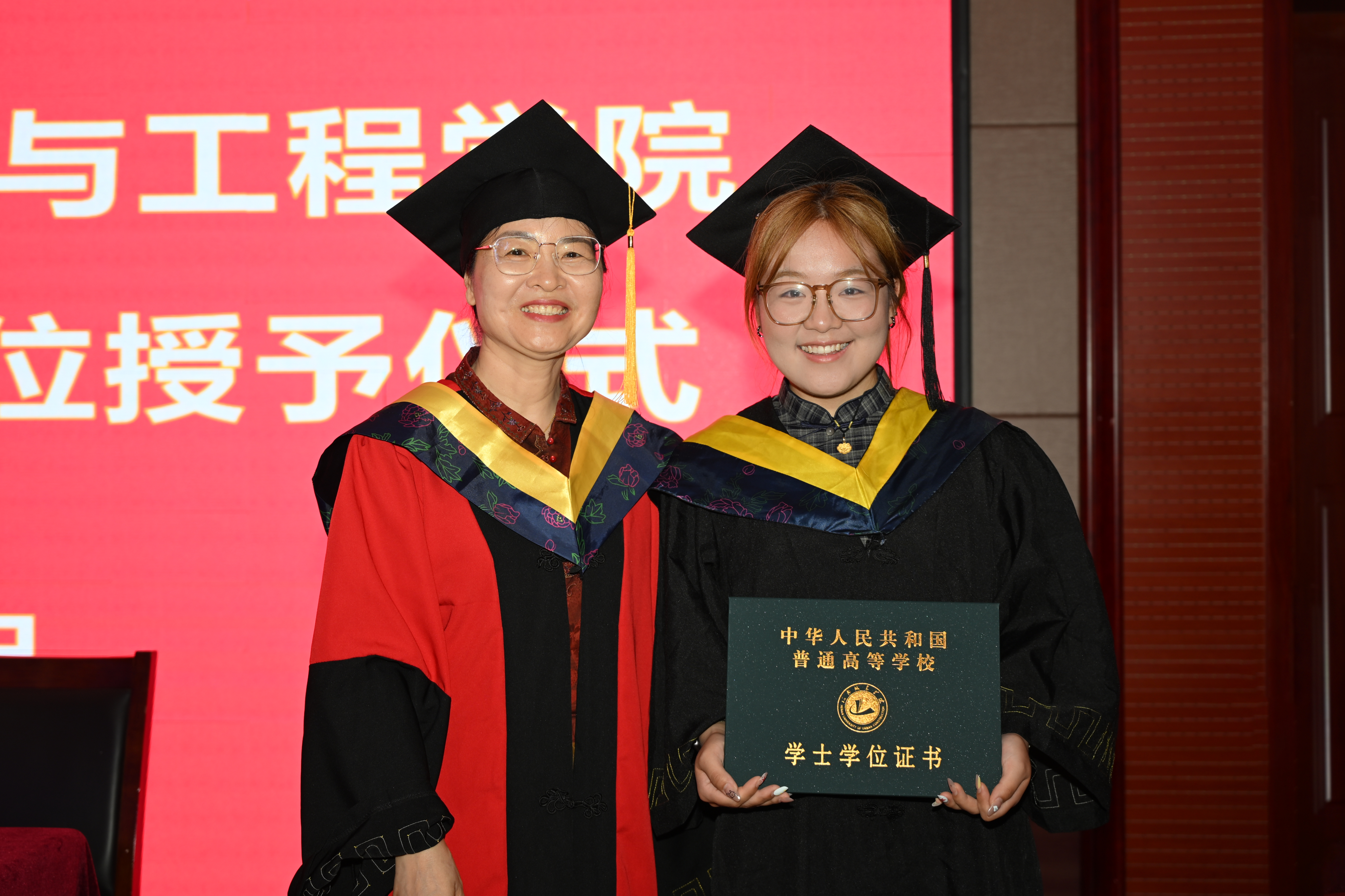 典礼在威严庄重的国歌声中拉开序幕。公司党委副书记张金俊宣读2025届优秀应届毕业生表彰决定,副院长王莲哲宣读授予周阿蒙等242名普通本科生学士学位的决定。与会领导为校级优秀应届毕业生代表颁发荣誉证书,并向员工联络员代表颁发聘书。副经理朱涛教授,刘瑞芳教授、洪军教授为毕业生逐一拨穗正冠并颁发学士学位证书。教师代表鲁铁博士以饱含深情的话语,分享了与同学们相处的点滴回忆,从专业角度出发送上寄语。毕业生代表冯世元分享了自己在公司老师的精心培养下,从成绩末流到考研383分的励志成长历程,感恩母校。