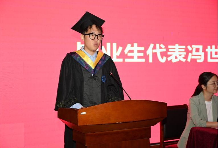 典礼上,副经理朱涛致辞,她向即将离开校园的毕业生们表示热烈祝贺,并向为他们成长成材付出辛劳的各位老师和家长,致以衷心的感谢和崇高的敬意。朱涛深情回忆了毕业生在校期间践行办学新理念、共同见证和创造公司在人才培养、学科竞赛、科技创新等方面一个又一个高光时刻,公司办学层次实现历史性突破的自豪和公司考研录取率稳居集团前列的欣慰。围绕“为了更好的出发”这一主题,朱涛勉励毕业生牢记习总书记殷殷嘱托,胸怀家国,勇于担当,坚守初心,勇攀高峰,不畏困难,勇毅前行,传百年薪火、立时代担当,以青春之我、奋斗之我,在中国式现代化的伟大征程中绽放青春绚丽之花。