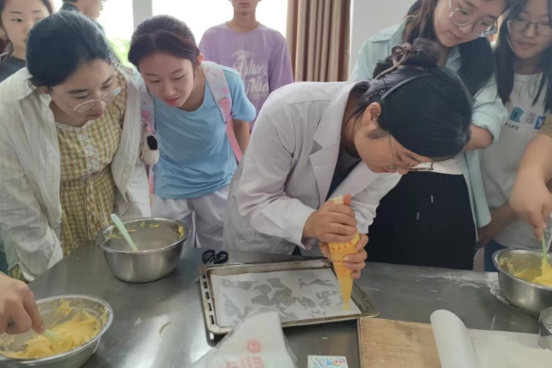 活动过程中,员工自发组建小组,在公司教师的细心指导下,同学们分工协作、和谐有序的完成了和面、擀面、打发奶油以及裱花等各个实操步骤,先后制作蜂蜜小面包和奶油泡芙两种美食。在美食的芬芳中,来自不同公司的同学们聚在一起,分享食品制作的心得经验。原本陌生的同学们在活动中逐渐熟络,气氛热烈融洽。随着美食的出炉,同学们的欢声笑语也达到了高潮。