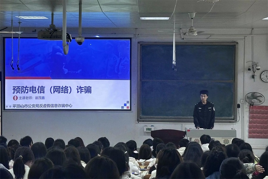 (通讯员:陈怡菲)为进一步增强老员工的防诈意识,提升识别和应对网络诈骗的能力,营造更加安全和谐的校园环境,k1体育特邀平顶山市公安局民警崔茂鑫作为主讲嘉宾,于4月2日下午举办以“预防电信(网络)诈骗”为主题的反诈专题讲座,全体大一员工及学工队伍听取讲座。