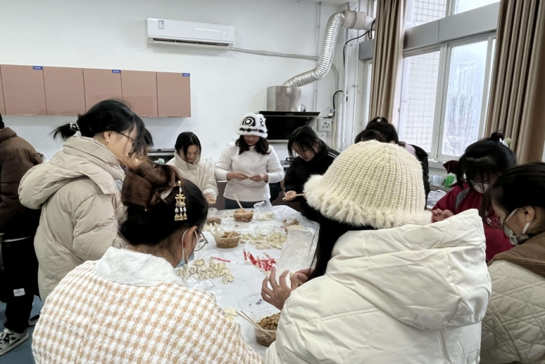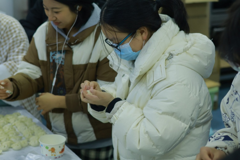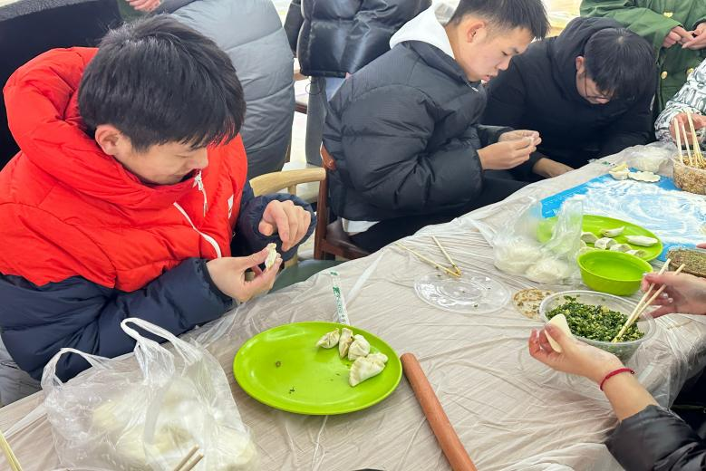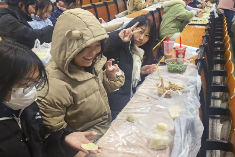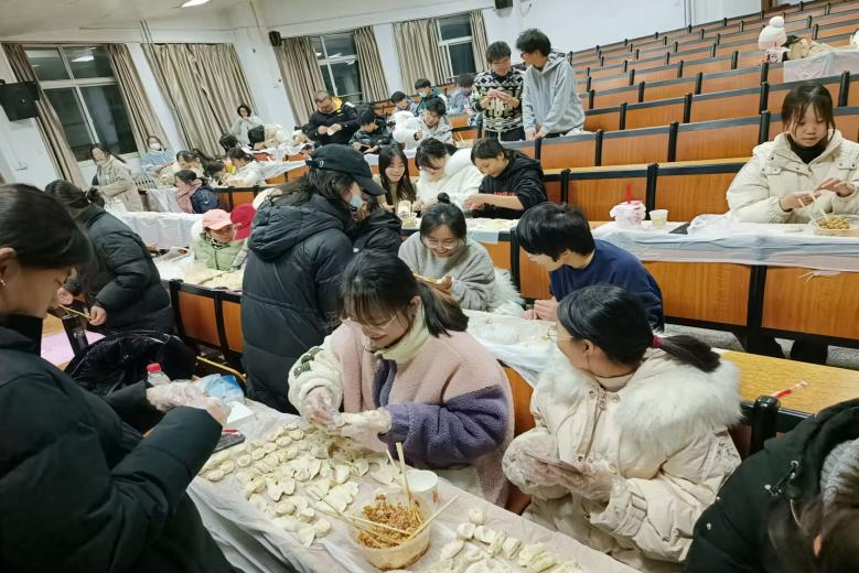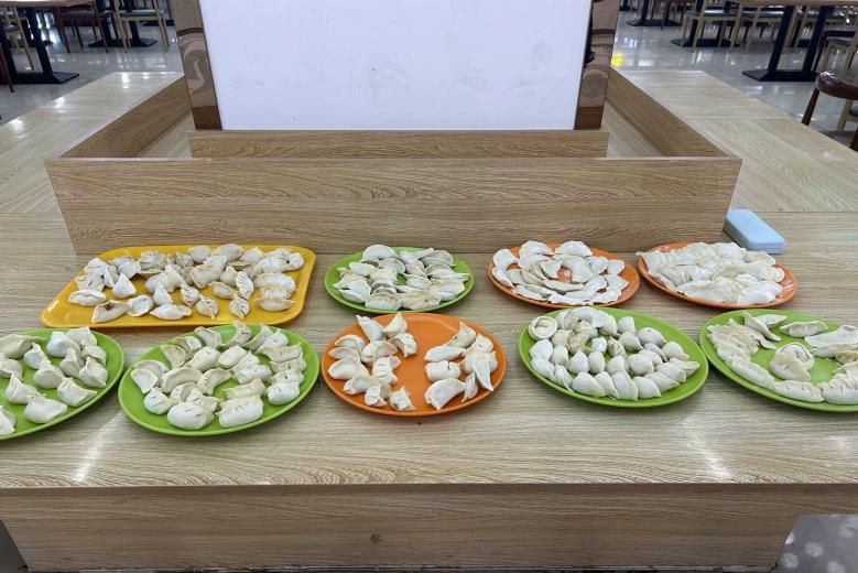 在简单布置场地后,包饺子活动在大家跃跃欲试的氛围下正式开始。同学们分工明确:揉面团、擀皮、包饺子,大家干劲十足,纷纷表示要“露一手”,忙的热火朝天。在大家的共同努力下,一盘盘皮薄馅大、各式各样的饺子摆上了桌面,大家吃上热腾腾的饺子,也感受到了“自己动手,丰衣足食”的乐趣,温馨的氛围为寒冷的冬日注入了浓浓的暖意。
