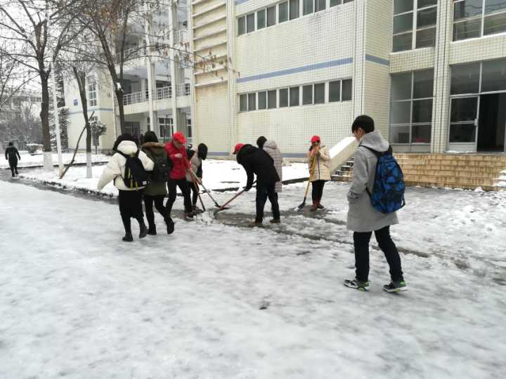相信这次扫雪活动,不仅消除了积雪带来的安全隐患,更让每一位参与者体会到了互帮互助、团结一致的力量和劳动的乐趣、奉献的乐趣。同时非常感谢青年志愿者协会的成员为我们开出的安全道路,也希望老师和同学们出行时小心。