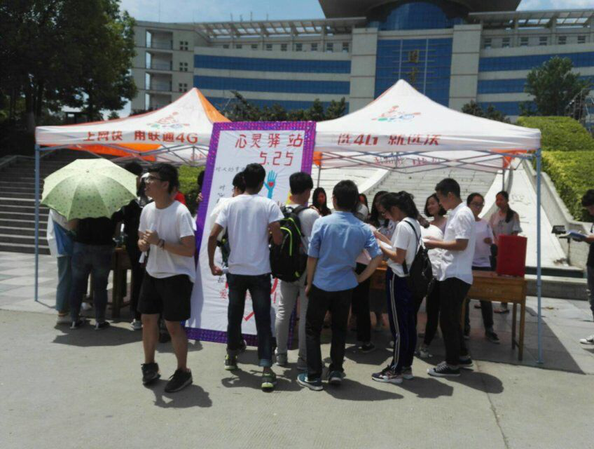 2017年5月23日,k1体育心理协会在喷泉广场下的景观大道开展了心理小知识答题活动。活动对象面向全体在校生。主题为“心理深处的阳光”。